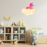 Nuestra luminaria Nube Unicornio además de iluminar llena de color y magia las habitaciones infantiles, creando un ambiente alegre y encantador. Se puede utilizar como iluminación principal de la habitación.